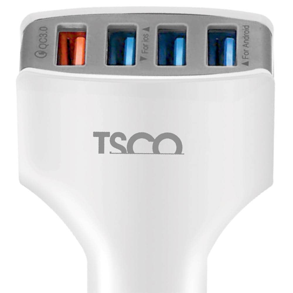 شارژر خودرو تسکو مدل TCG 20 با چهار پورت USB، پشتیبانی از QC3.0، سازگاری با ۱۲ تا ۳۲ ولت، طراحی سبک و کابل Type-C همراه؛ انتخابی مطمئن برای شارژ سریع و هم‌زمان چند دستگاه در سفرهای کوتاه و طولانی.