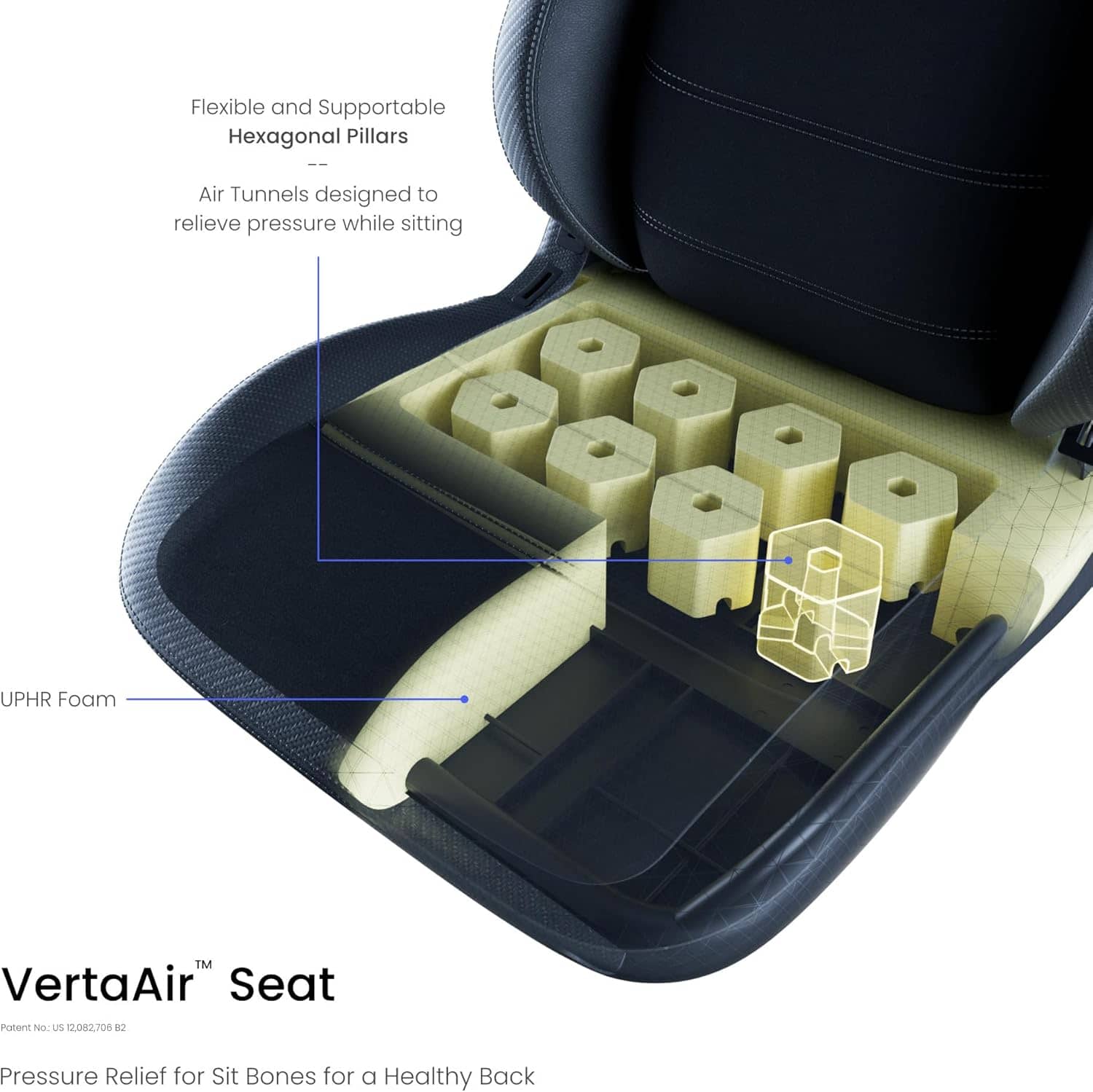 نشیمنگاه VertaAir™ از ستونهای هوایی تشکیل شده که وزن را به شکل یکنواخت پخش میکنند. این یعنی: