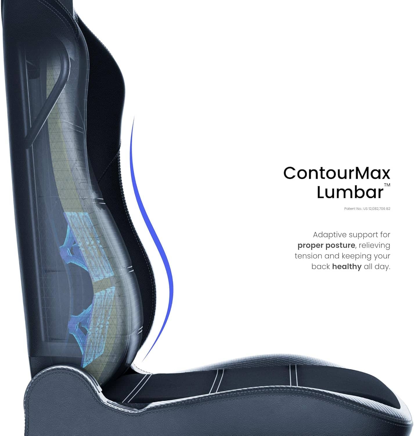 یکی از بخشهای فوقالعاده این مدل، سیستم پشتیبان کمر ContourMax™ Dynamic Lumbar است. این مکانیزم برخلاف بالشتکهای ساده، بهصورت پویا با شکل بدن هماهنگ میشود و به ستون فقرات کمک میکند در حالت درست قرار بگیرد. اگر همیشه بعد از کار یا بازی کمر درد میگیری، این سیستم دقیقاً همان چیزی است که لازم داری.