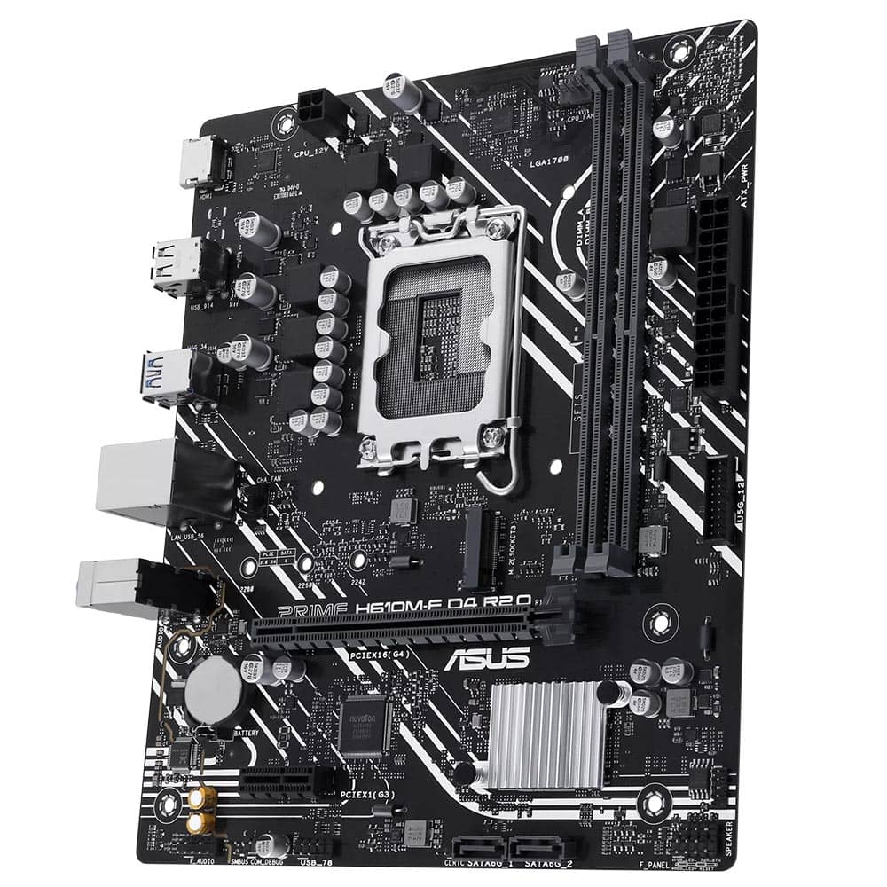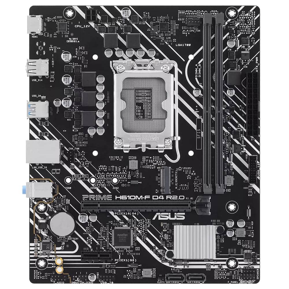 مادربرد PRIME H610M-F D4 R2.0 از سوکت LGA 1700 بهره می‌برد و با پردازنده‌های نسل ۱۲، ۱۳ و ۱۴ اینتل سازگار است. چیپ‌ست Intel H610 نیز زیرساخت مناسبی برای سیستم‌های میان‌رده فراهم می‌کند.
