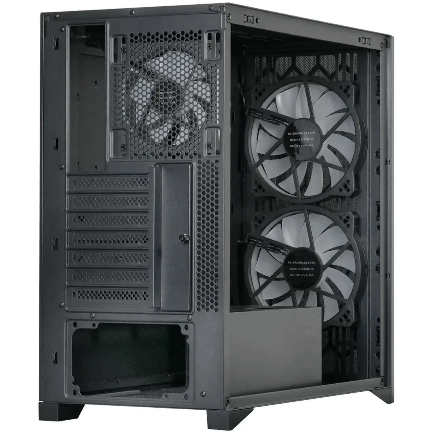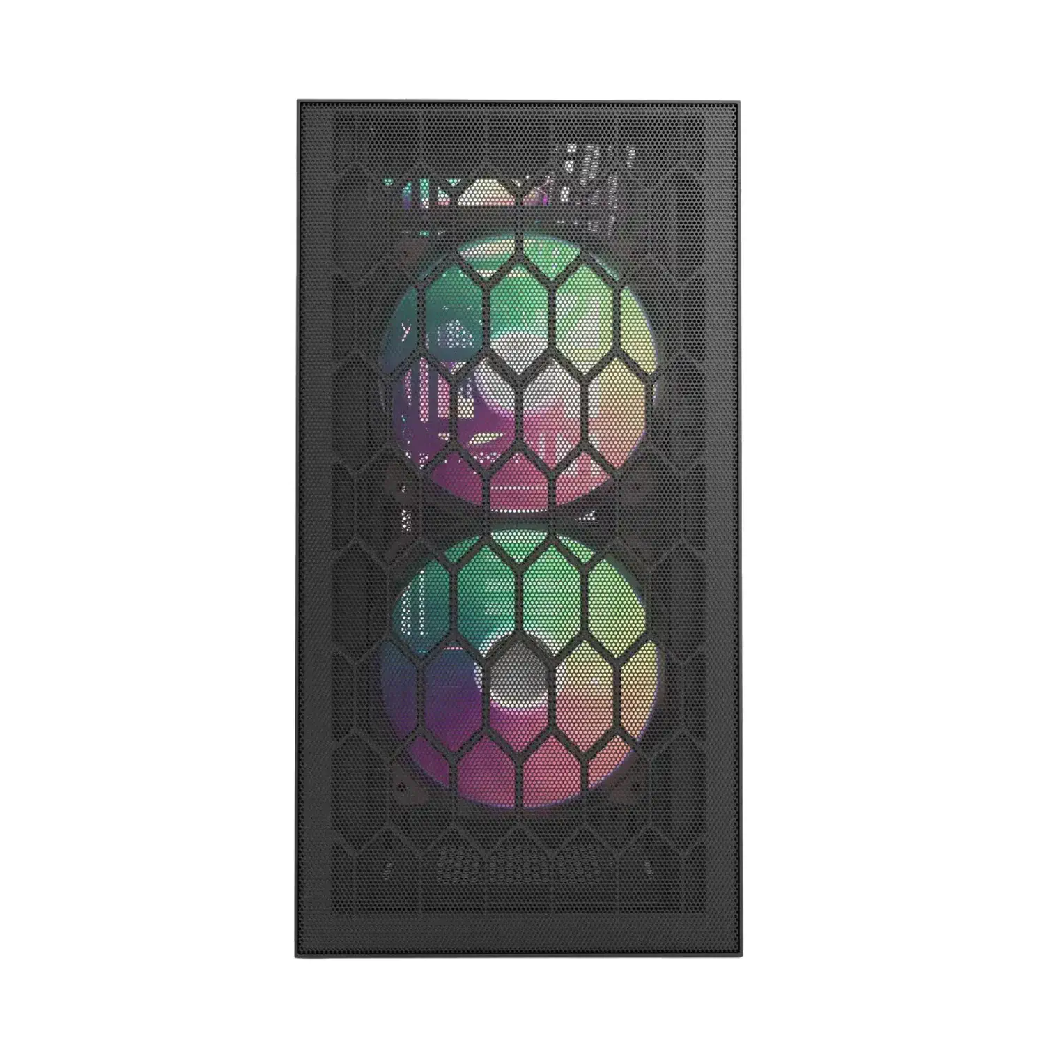 پنل جلویی مش فلزی، مثل یه دروازه باز برای هوا، جریان ورودی رو به حداکثر می‌رسونه و برای نصب رادیاتورهای بزرگ (مثل ۴۲۰ میلی‌متری) بهینه‌ست. این طراحی، برتری بزرگی نسبت به کیس‌های تمام شیشه‌ای داره که جریان هوا رو محدود می‌کنن. خروجی‌های عقب و بالا هم تهویه رو کامل می‌کنن و دمای قطعات رو در اوج عملکرد پایین نگه می‌دارن.   GC4508 THUNDERWAVE