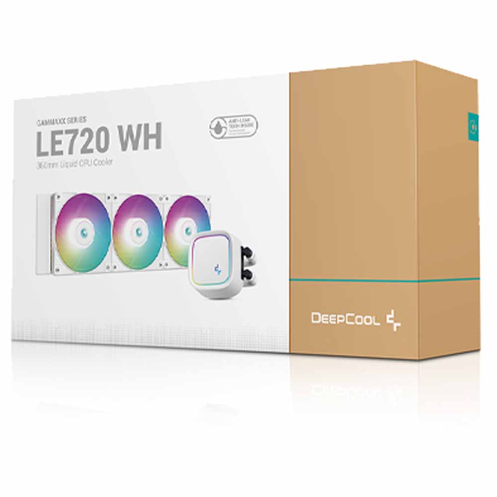 خنک کننده پردازنده DeepCool مدل LE720 ARGB White با طراحی مدرن و جذاب، به راحتی با هر سیستم کامپیوتری هماهنگ می‌شود. این محصول دارای رادیاتور آلومینیومی 360 میلی‌متری است که به همراه سه فن 120 میلی‌متری، عملکرد خنک‌کنندگی بالایی ارائه می‌دهد.