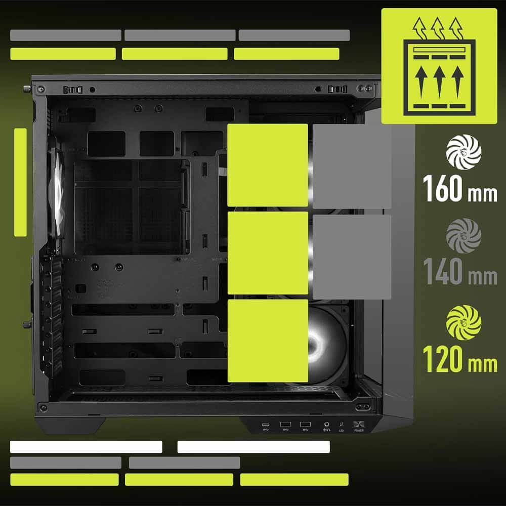 | حداکثر اندازه کولر مایع در پنل پایین | 120 / 240 / 360 mm |